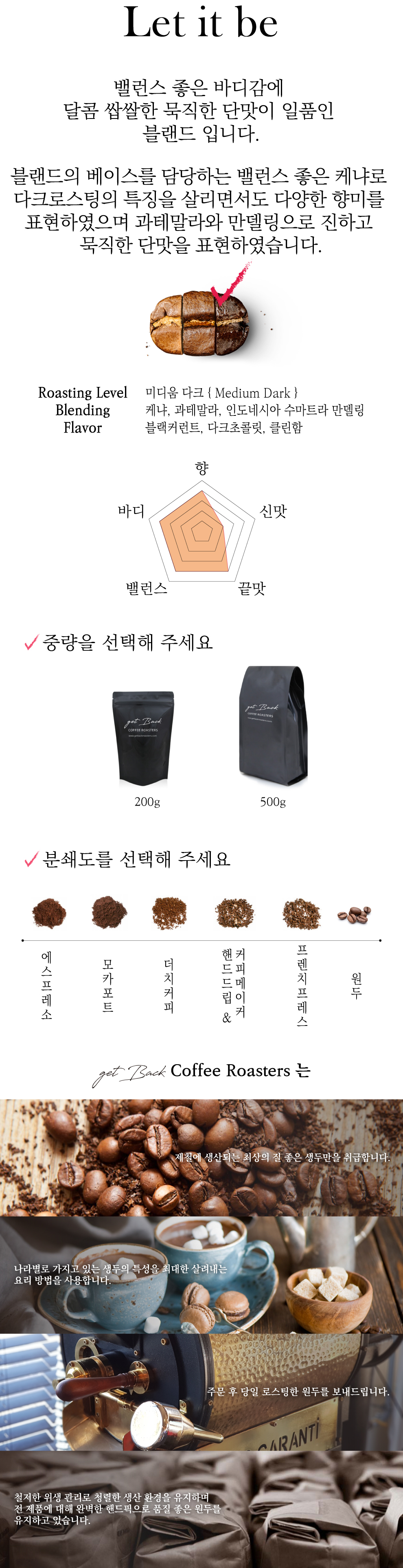개인 기호 (맛과 향), 분쇄 옵션 선택을 잘 못 하였을 경우 교환 및 반품이 불가합니다.